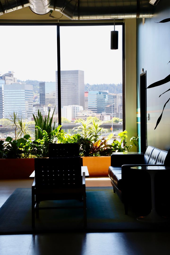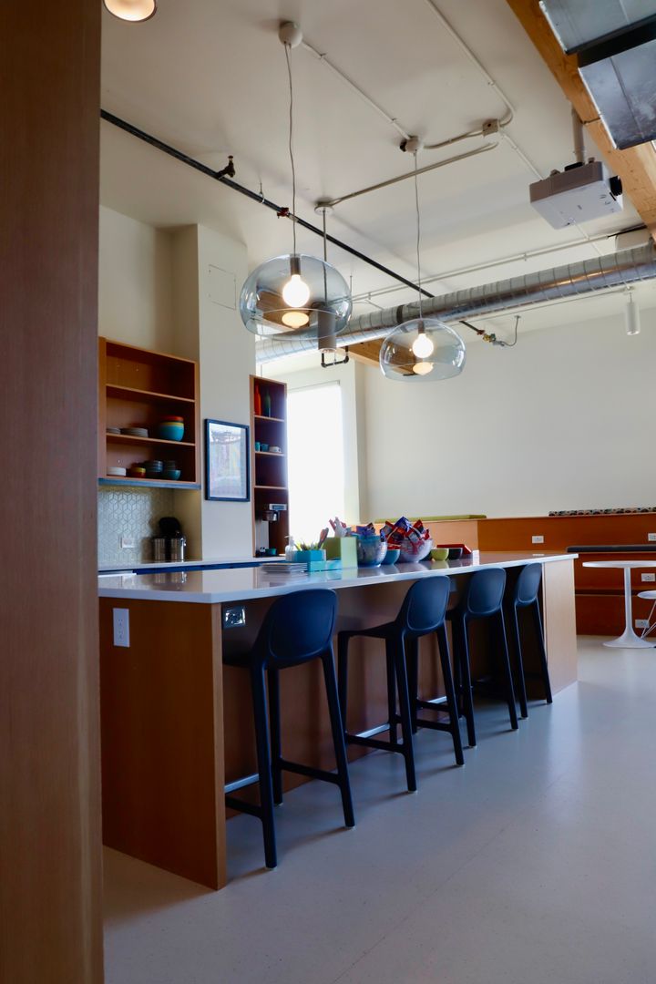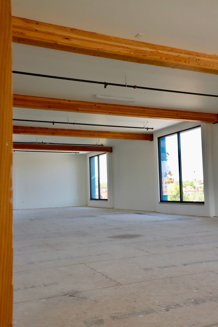 This space is located on the third floor with lots of light with three sets of 10x10 windows. Enjoy a full kitchenette with a sink, cabinets, counter space and a full size stainless steal refrigerator.